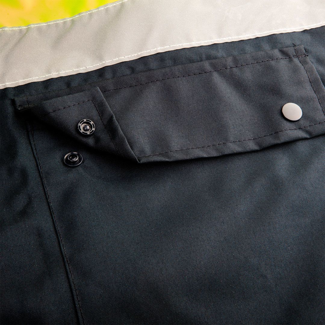 NEO radna jakna visoke vidljivosti izrađena je od izdržljivog Oxford 300D materijala i namenjena radu u uslovima smanjene vidljivosti i lošeg vremena. Fluorescentna tkanina sa reflektujućim detaljima obezbeđuje vidljivost klase 2 prema standardu EN ISO 20471, povećavajući bezbednost u saobraćaju, na gradilištima i u industrijskom okruženju. Lepljeni šavovi i vodootporan materijal pružaju pouzdanu zaštitu od kiše, dok je kapuljača diskretno smeštena u kragni. Jakna je lagana, udobna i pogodna za svakodnevnu profesionalnu upotrebu.